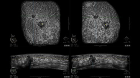 • сканирование одной грудной железы в трех проекциях не более 60 сек.;