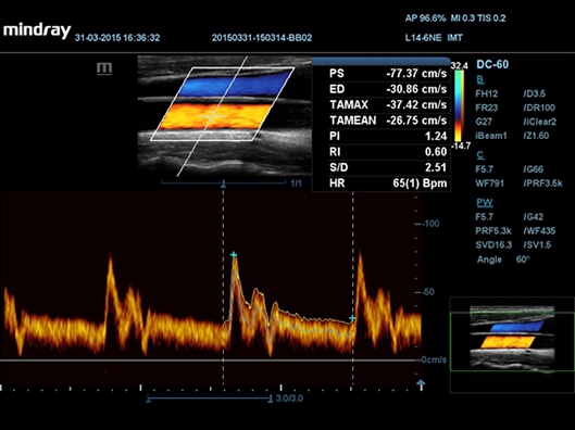 - HR Flow - режим отображения кровотока с высоким временным и пространственным разрешением для точной и однородной визуализации сосудов, в том числе самых мелких